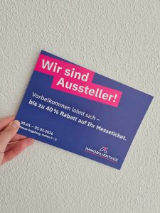 Erhalten Sie Einblick in unsere Projekte und Arbeiten und besuchen Sie uns auf den Immobilientagen in der Messe Augsburg vom 30.01.-01.02.2026 in Halle 5, Stand 437.